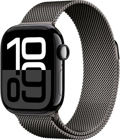 Apple Watch Series 10 46mm Jet Black Titanium Case with Milanese Loop, Slate